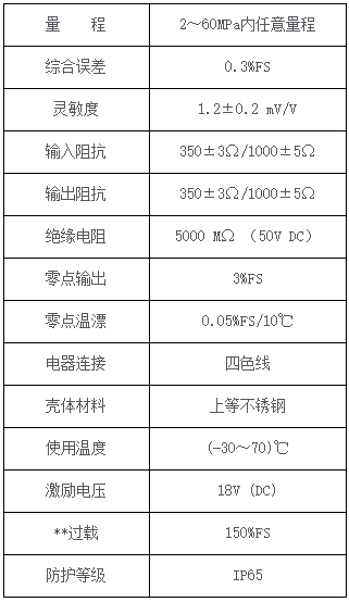 YB3压力传感器芯体替代扩散硅芯体的经济实惠型芯体,成本低。该压力传感器芯体外观精美,装配简单,使用方便。一、产品特点1、精度高,输出信号稳定;2、替代扩散硅芯体的经济实惠型芯体3、体积小巧美观,装配简单、使用方便。二、外形尺寸(可根据用户实际要求订做)三、技术参数四、主要用途加装外壳、电缆线等就可组装成压力传感器。应用于液体压力检测,如水、油、轻度腐蚀性液体。五、接线方式红—电源(+);黑—电源